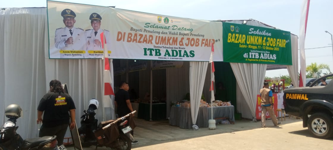 Pemalang – Pancaran sinar mentari pagi ini nampak Kompak mengawali langkah pasti Wakil Bupati Pemalang, Nurkholes, untuk meresmikan event bergengsi bertemakan “Bazzar UMKM dan Job Fair ITB Adias Pemalang”. Event bergengsi yang menyajikan produk unggulan Usaha Mikro Kecil dan Menengah serta Job Fair ini diselenggarakan oleh Institut Teknologi dan Bisnis Adias (ITB ADIAS) yang beralamat di Jalan Raya Tegalmlati, Kecamatan Petarukan, Kabupaten Pemalang, Jawa Tengah, (11/10/2025).