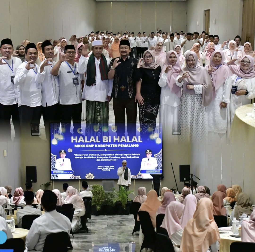 AMKMedianews.com, Pemalang – Upaya memperkuat sinergi di sektor pendidikan terus digalakkan oleh Pemerintah Kabupaten Pemalang. Bupati Pemalang, Anom Widiyantoro, menghadiri acara Halalbihalal yang diselenggarakan oleh Musyawarah Kerja Kepala Sekolah (MKKS) SMP Kabupaten Pemalang, Sabtu (4/4/2026).