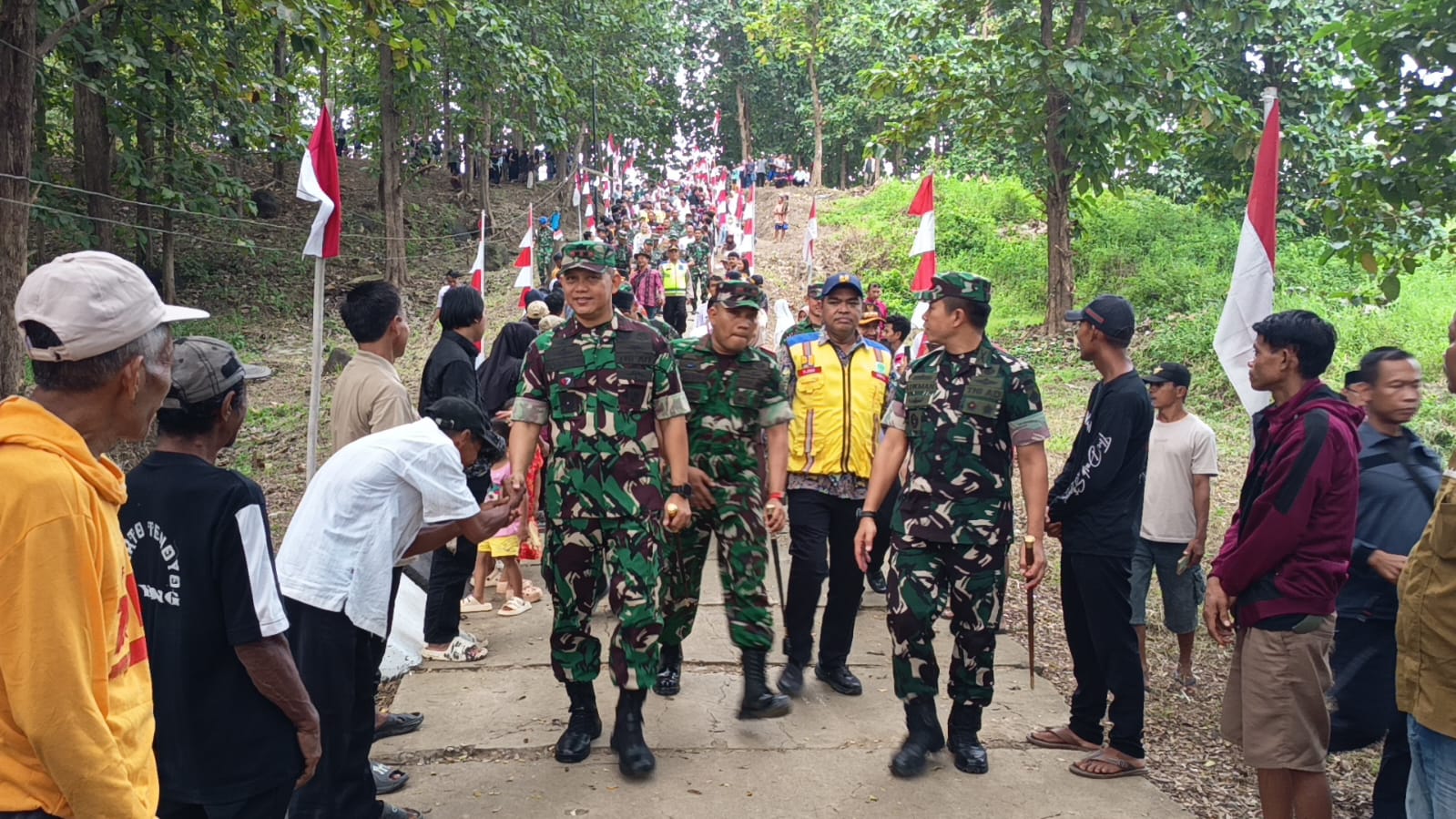 Acara ditandai dengan prosesi pemotongan pita, penandatanganan prasasti, hingga pemotongan tumpeng sebagai simbol rasa syukur. Bupati bersama Pangdam juga meninjau langsung kondisi fisik jembatan untuk memastikan kesiapan sarana tersebut dalam menunjang mobilitas masyarakat sehari-hari.