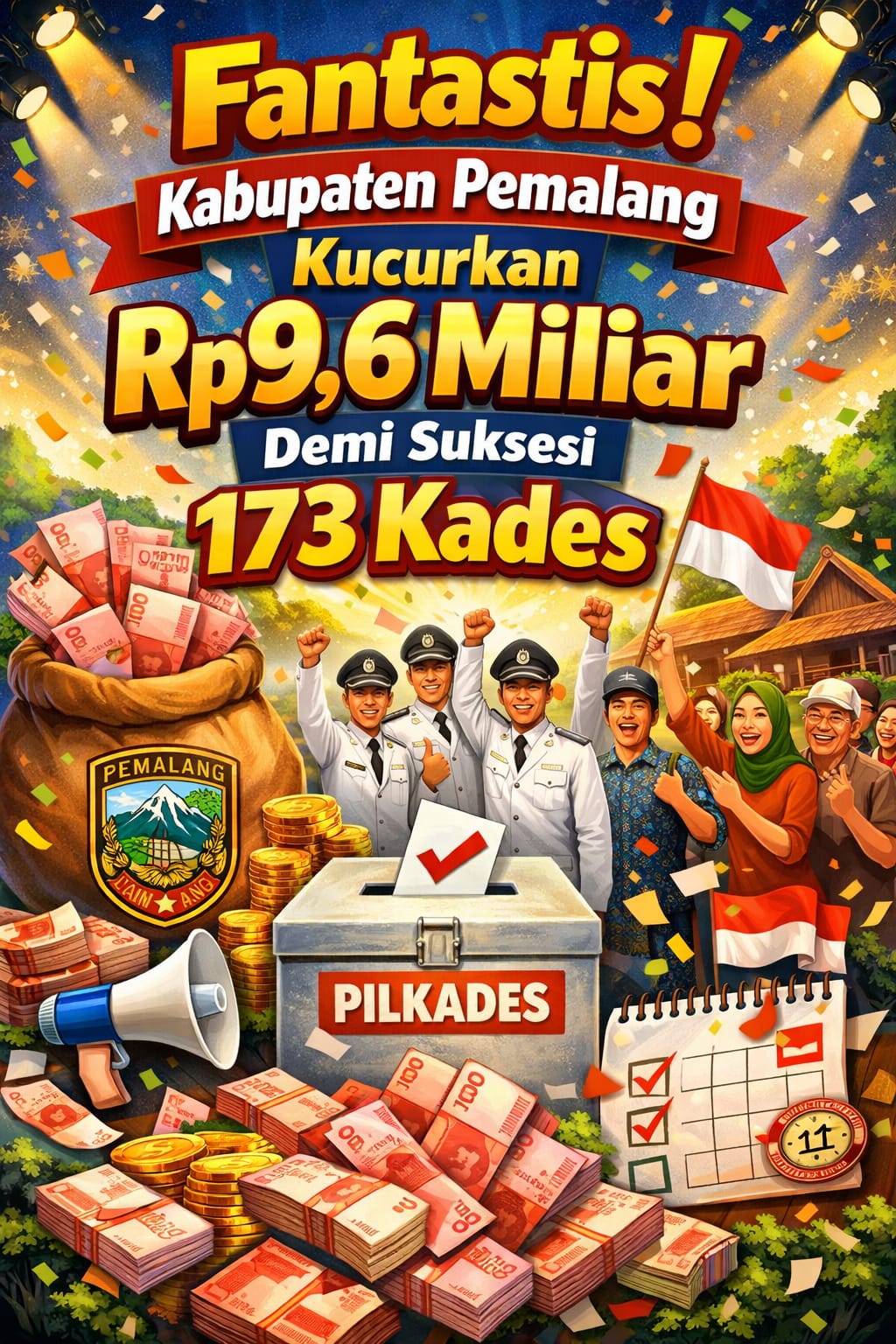 AMKMedianews.com, Pemalang – Pemerintah Kabupaten Pemalang mulai mematangkan persiapan pesta demokrasi tingkat desa yang akan digelar pada tahun 2026 mendatang. Sebanyak 173 desa dijadwalkan bakal melaksanakan Pemilihan Kepala Desa (Pilkades) serentak dengan sokongan dana hibah mencapai Rp9,6 miliar.