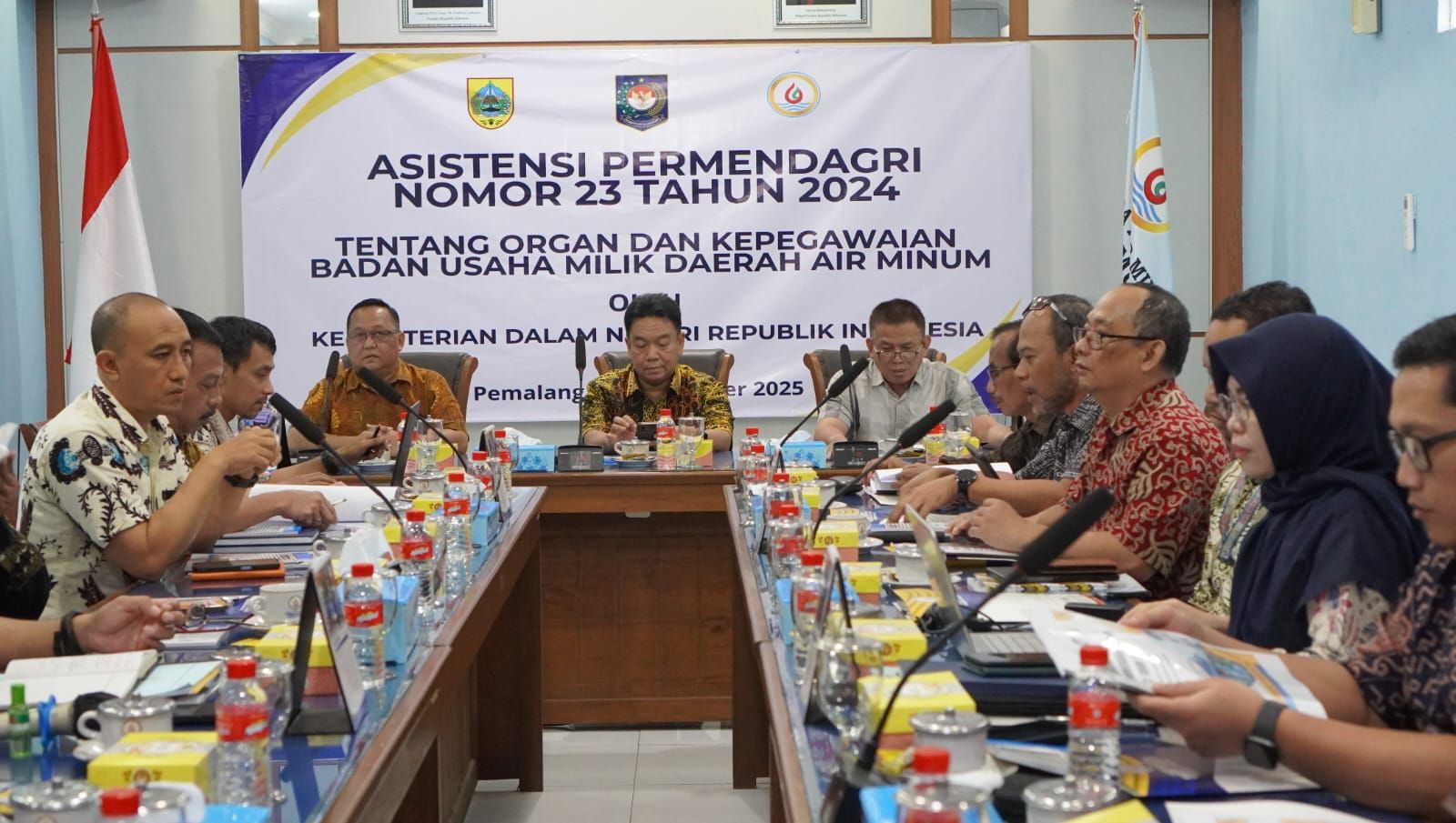 AMKMedianews.com, Pemalang – Kementerian Dalam Negeri memberikan asistensi terkait penerapan Peraturan Menteri Dalam Negeri (Permendagri) Nomor 23 Tahun 2024 mengenai Organ dan Kepegawaian Badan Usaha Milik Daerah (BUMD) Air Minum kepada Perumda Air Minum Tirta Mulia Kabupaten Pemalang. Kegiatan tersebut digelar di Ruang MA Telaga Gede Kantor Perumda Tirta Mulia pada Sabtu (22/11/2025).