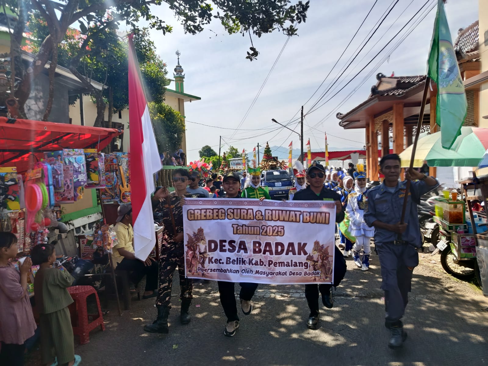 Pemalang _Suasana penuh semangat dan keceriaan menyelimuti Desa Badak, Kecamatan Belik,Kabupaten Pemalang,saat ratusan warga tumpah ruah memeriahkan Kirab Budaya yang digelar pada Sabtu 12/7/2025. Kegiatan ini tidak hanya menampilkan kekayaan budaya lokal tetapi juga menjadi simbol kuatnya gotong royong dan kemandirian warga desa.