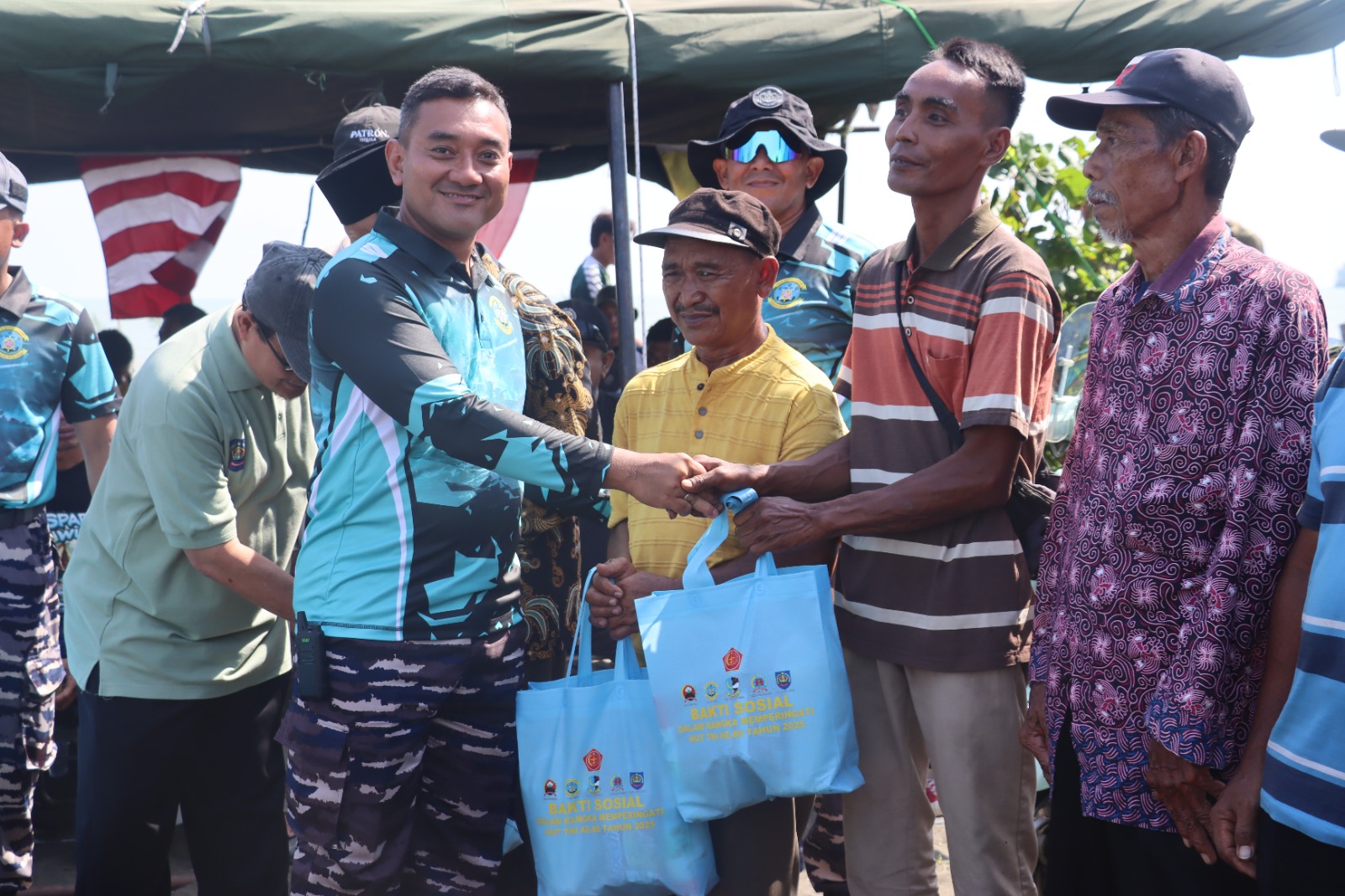 Tegal – Dalam rangka menjaga kelestarian lingkungan pesisir sekaligus meningkatkan kepedulian sosial kepada masyarakat, Pangkalan TNI Angkatan Laut Tegal bekerja sama dengan Pemerintah Daerah Kabupaten Tegal melaksanakan kegiatan penanaman pohon cemara laut sebanyak 1.500 pohon dan bakti sosial pembagian 100 paket sembako di Pantai Marlin Suradadi Desa Sidareja Kecamatan Suradadi Kabupaten Tegal.