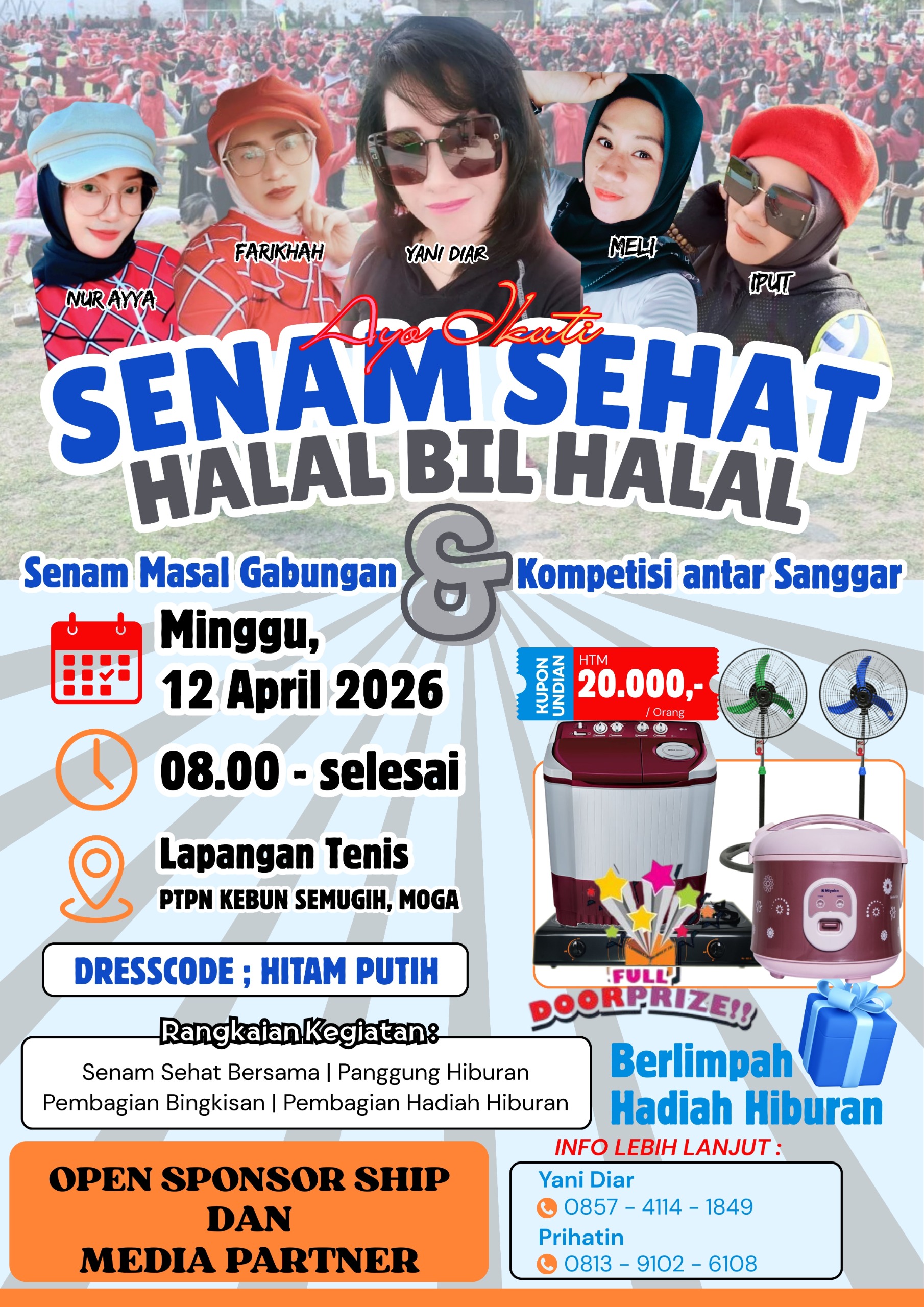Moga|amkmedianews.com – Dalam rangka mempererat silaturahmi pasca Hari Raya Idulfitri, masyarakat akan menggelar kegiatan bertajuk “Senam Sehat Halal Bihalal” yang dikemas dengan berbagai acara menarik.