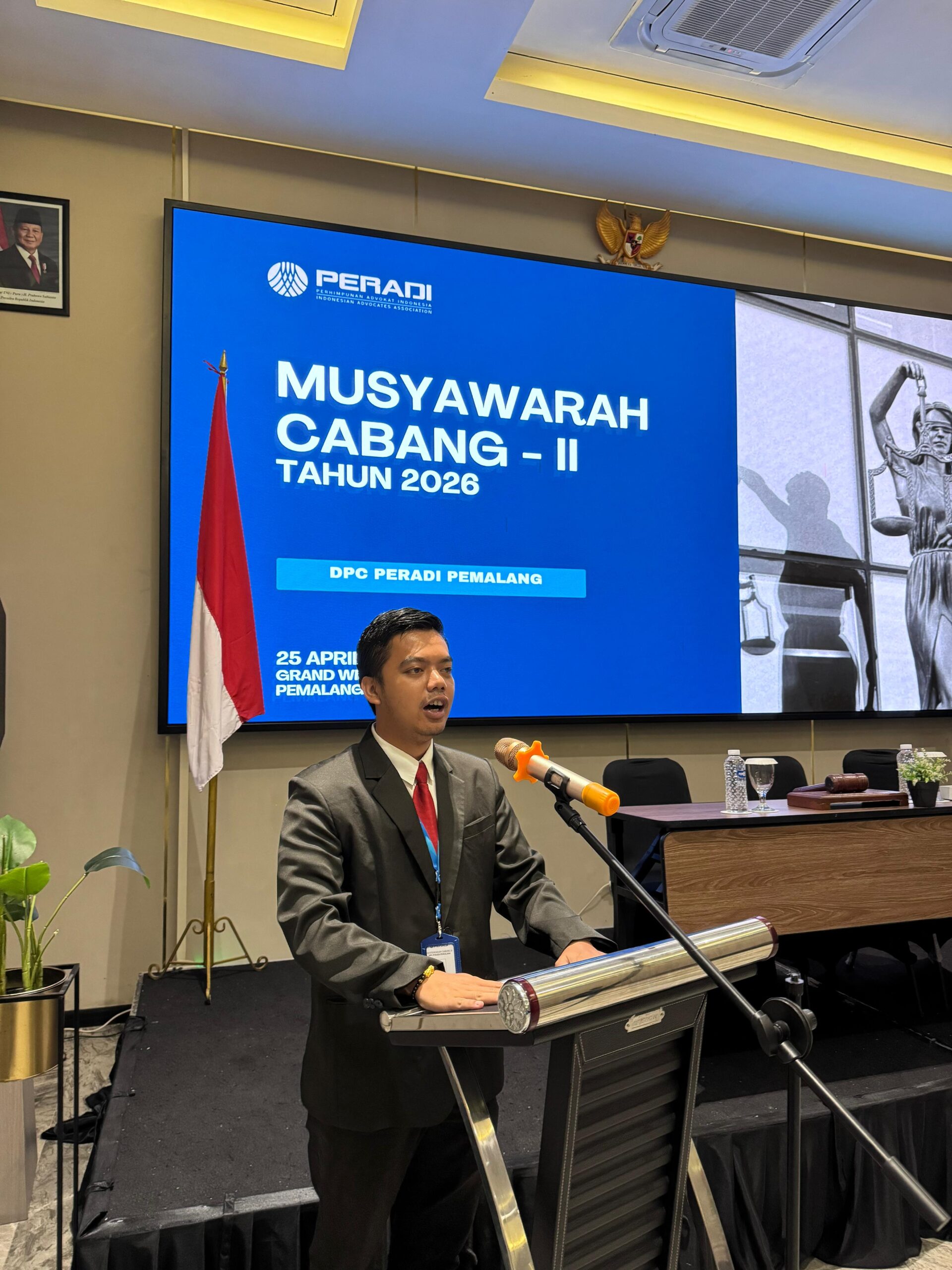 AMKMedianews.com, Pemalang – Dewan Pimpinan Cabang Perhimpunan Advokat Indonesia (DPC Peradi) Pemalang resmi memiliki nakhoda baru. Melalui gelaran Musyawarah Cabang (Muscab) II yang berlangsung khidmat di Grand Wijaya Hotel Pemalang pada Sabtu (25/4/2026), Advokat Misbakhul Munir terpilih untuk melanjutkan tongkat estafet kepemimpinan organisasi.