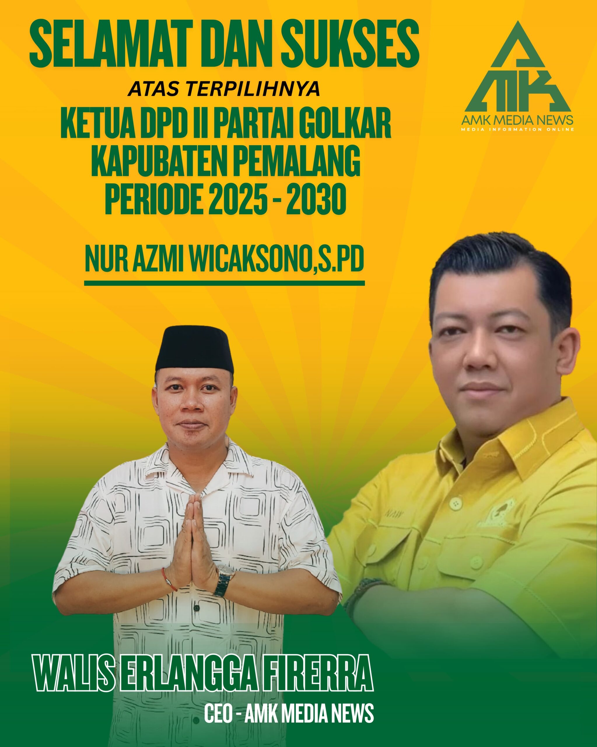 AMKMedianews.com, Pemalang – Musyawarah Daerah (Musda) XI Dewan Pengurus Daerah (DPD) Partai Golkar Kabupaten Pemalang, Jawa Tengah, yang digelar secara khidmat, di salah satu hotel berbintang jalan pantura Kecamatan Taman telah menghasilkan keputusan penting bagi perjalanan politik di daerah tersebut. Musda ini resmi menetapkan Nur Azmi Wicaksono sebagai ketua baru untuk masa bakti 2025-2030, menandai babak baru kepemimpinan partai berlambang pohon beringin di Pemalang.