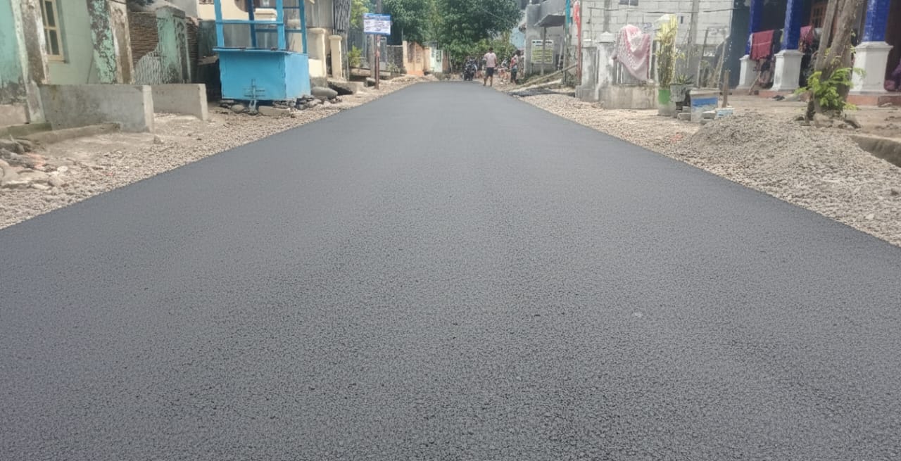 Pengaspalan dilakukan pada dua titik, yaitu sepanjang 85 meter dengan lebar 4 meter dan ketebalan 0,02 meter, serta 260 meter dengan lebar 3,5 meter dan ketebalan yang sama. Lokasi pekerjaan berada di jalur RT 10 RW 03 hingga RT 7 RW 04.