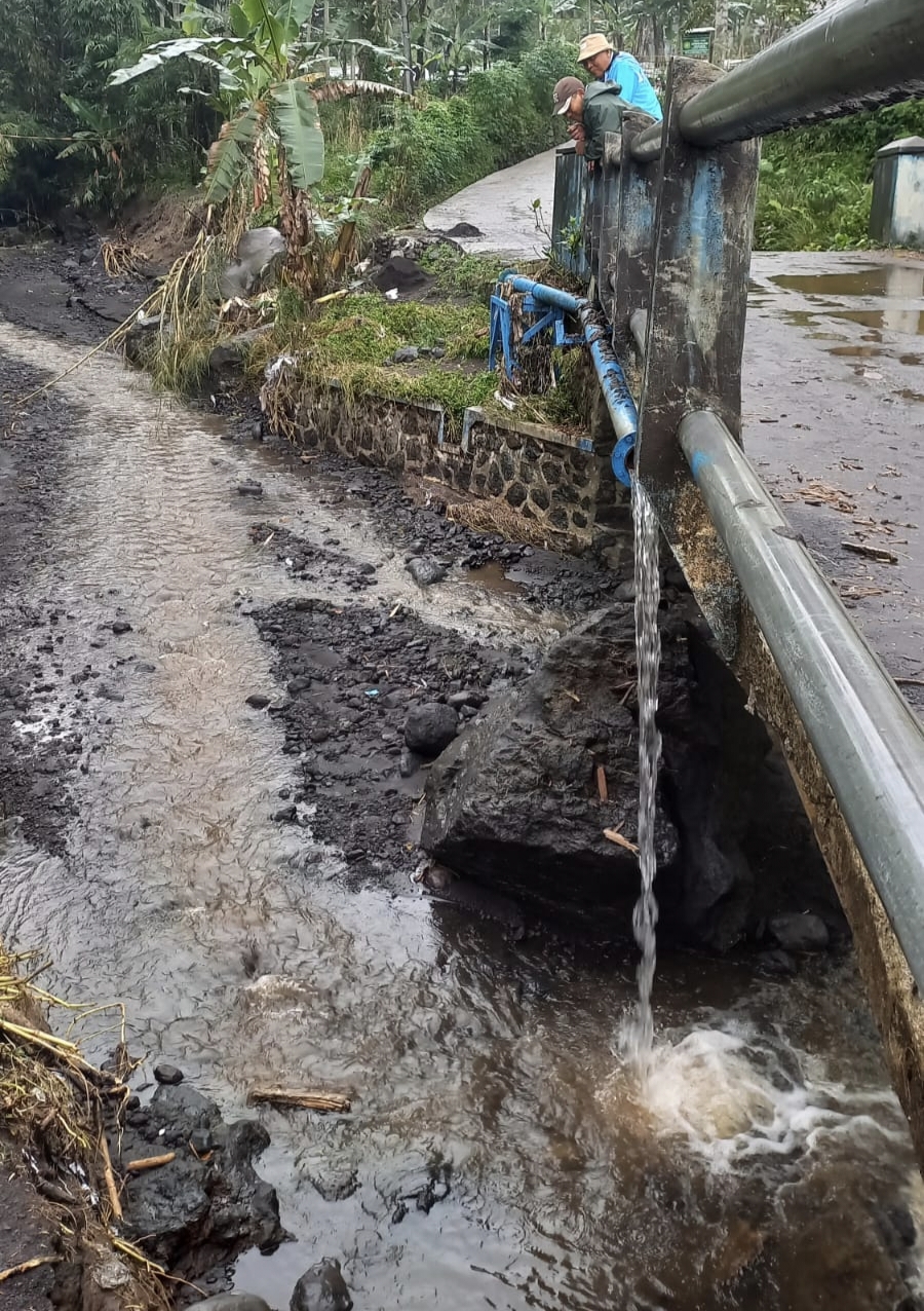 Plt. Direktur Utama Perumda Tirta Mulia, Moch. Arief Setiawan, melakukan inspeksi darurat ke lokasi kerusakan di Jembatan Kaliagung, Desa Nyalembeng, Sabtu (24/1). Berdasarkan hasil tinjauan bersama jajaran teknik, kerusakan ini tergolong masif karena memutus urat nadi distribusi utama di wilayah lereng Gunung Slamet.”Dari delapan titik jembatan pipa yang kami operasikan di Pulosari, lima di antaranya rusak berat diterjang banjir bandang. Kondisi ini membuat distribusi air ke pelanggan terhenti sepenuhnya,” ujar Moch. Arief Setiawan.