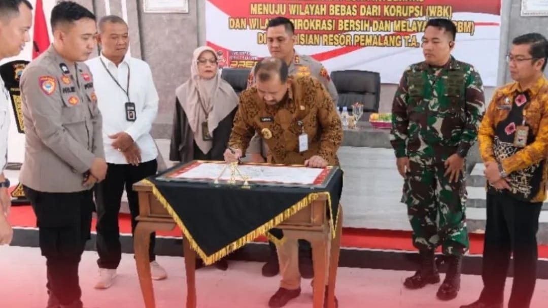 AMKMedianews.com, Pemalang – Dalam upaya memperkuat komitmen terhadap pelayanan publik yang bebas dari praktik korupsi dan berintegritas tinggi, Polres Pemalang mencanangkan pembangunan Zona Integritas menuju Wilayah Bebas Korupsi (WBK) dan Wilayah Birokrasi Bersih dan Melayani (WBBM). Kegiatan ini berlangsung di Aula Tribrata Mapolres Pemalang pada Rabu (13/8/2025).