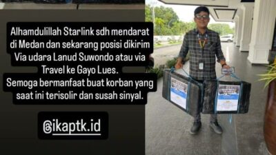 Perangkat Starlink tersebut telah tiba di Kota Medan dan selanjutnya dikirimkan menuju Kabupaten Gayo Lues. Proses pengiriman dilakukan melalui jalur udara serta alternatif jalur darat, mengingat kondisi medan dan infrastruktur yang terbatas di wilayah tersebut. Penyaluran bantuan ini melibatkan berbagai pihak agar dapat sampai dengan aman dan tepat sasaran.