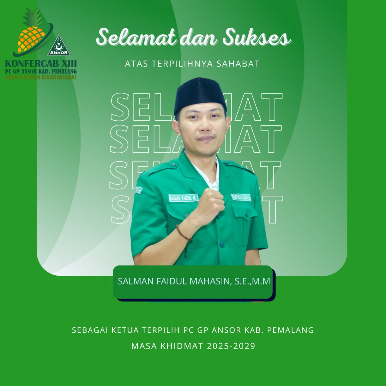 AMKMedianews.com, Pemalang — Konferensi Cabang (Konfercab) Pimpinan Cabang Gerakan Pemuda (GP) Ansor Kabupaten Pemalang yang digelar di Gedung Kanzuz Dzikri, Pondok Pesantren Al Falah Mislakhul Muta’alimin, resmi menetapkan pemimpin baru untuk masa khidmat 2025–2029. Dalam forum tertinggi organisasi tingkat cabang ini, Sahabat Salman Faidul Mahasin, S.E., M.M., yang akrab disapa Gus Edo, terpilih sebagai Ketua PC GP Ansor Kabupaten Pemalang.