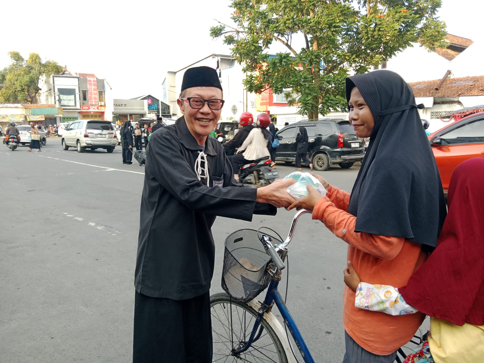 Puluhan anggota SH Terate Cabang Pemalang tampak antusias membagikan paket takjil kepada para pengguna jalan serta masyarakat yang melintas menjelang waktu berbuka puasa.